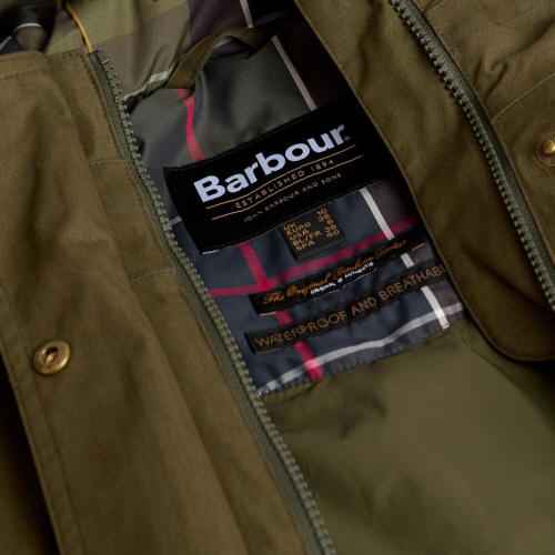 Barbour Bamburgh £ 269.10The Barbour Bamburgh Waterproof is a longer length waterproof jacket with a grown on hood, back yoke detail, waist adjusters and back vents. This jacket is lined in our signature Barbour tartan.