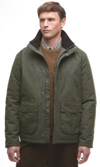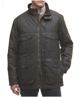 Barbour brown leather badge to wearers left pocket flap and large brown leather badge to centre back neck.